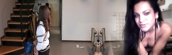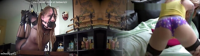 Strappado, claustrophobia and orgasm predicament for captive chick.