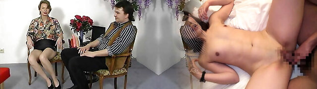 Short hair lesbian and her beautiful neighbour are flirting before taking it all the way to the guest room