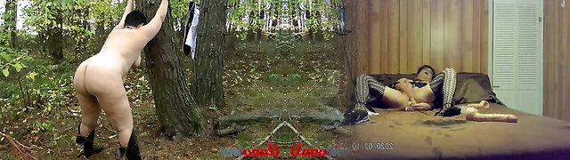 Muddy Busty Redhead Has Fun With a Submissive Chained Guy, Kicking His Balls And Teasing His Stiffy