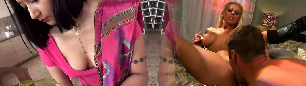 Bruntte Kicks Blonde´s Bootie Then Predominates Her With A Dildo