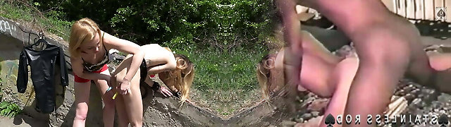Caught a pissing gal on his farm and punished by fucking in the culo