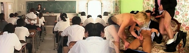 Asian school babe in ropes flashes cunny upskirt in class
