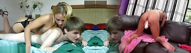 MFF humiliation trio for teen sex marionettes