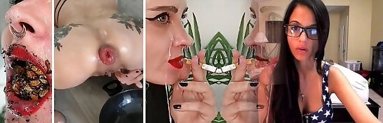 Extreme dirty coocking show (prolapse, humiliation, food, urinate, massy, trash, human ash-pot)