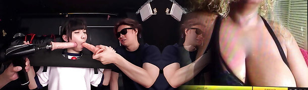 Strapped up Japanese coed gal Aoi Yuuki gets all her holes drilled really hard