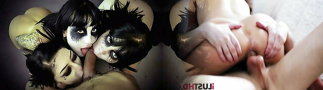 Bffs - Intense Halloween Orgy With 3 Tattooed Teens