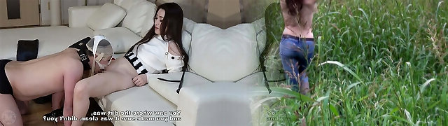 Domina chicks have party with their slave and a belt dick