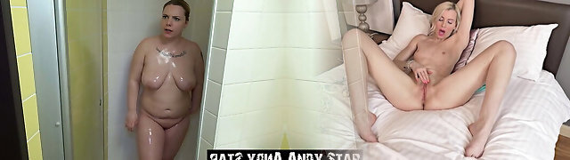 Fake Hostel - Slim blonde honey corded up and fucked by Futa MILF in body stocking taking a creampie in her throat and inside her soaking wet shaved cunny