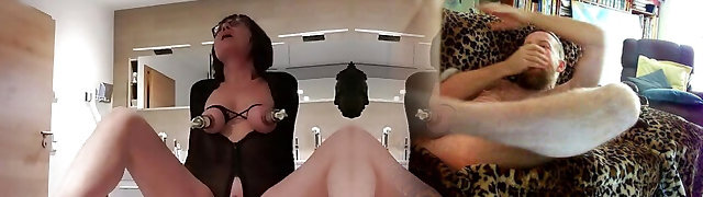 Mistress dominating and playing with her slave ( filmed in the mirror), mistress bdsm, slave master kink,bdsm mistres predominance