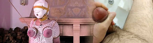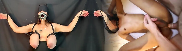 Fake Hostel - Slim blonde honey corded up and fucked by Futa MILF in body stocking taking a creampie in her throat and inside her soaking wet shaved cunny
