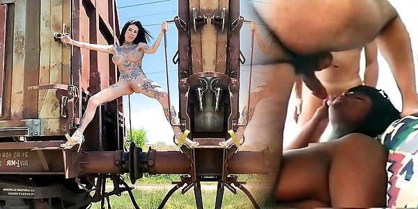 Black and white pussy licking pussy fucking in japanise big butt position in the garden 05:43
