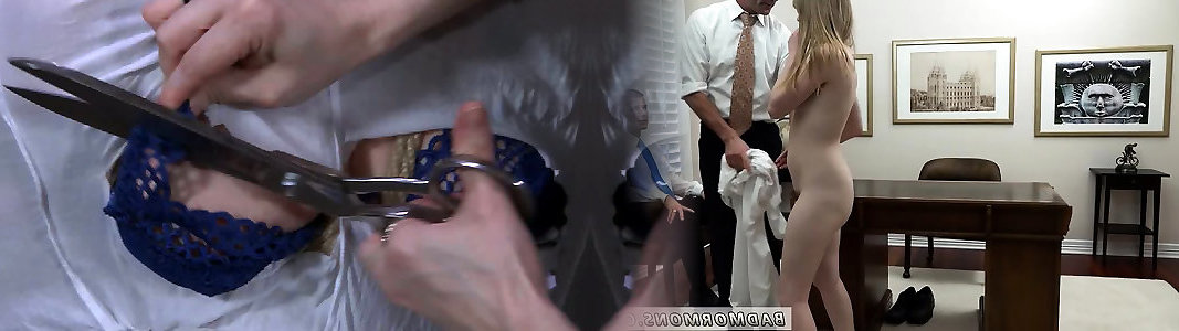 Long-legged pornography model is punished with scissors in the dungeon