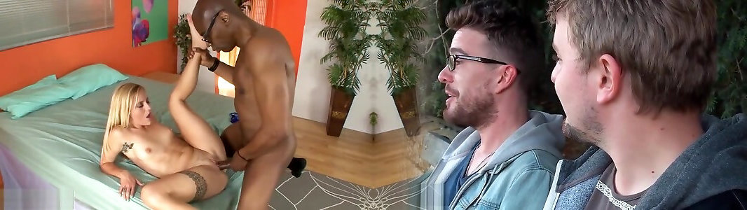 Towheaded super-bitch Sierra Skye gives double blowjob with her bisexual guy