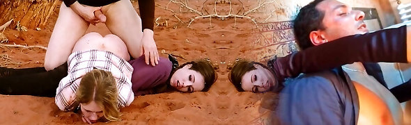 Rump to mouth domination for kinky threesome in the desert