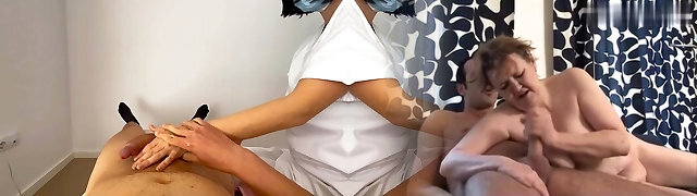 I take off my towel and surprise the masseuse girl who gives me a handjob until I accomplish spunking