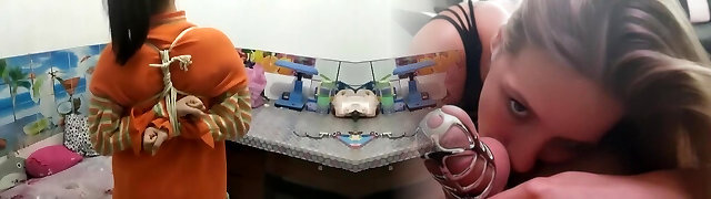 Dominatrix Lesson! Slavegirl frogtied, gams spread and nipples squeezed