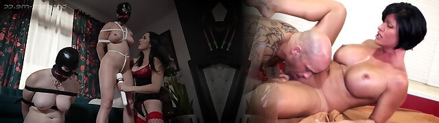 Hot red haired Dominatrix enjoys her big titted sub