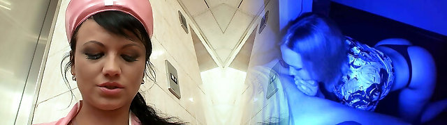 Two whorey chicks are caught breaking and injecting by a latex-dressed man who bangs them both as a threesome, flashing his dominance over their sexu