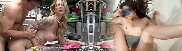 Busty Cougar Syren De Mer and dauther Harlow West were caught on CCTV stealing and got a fuck penalty from the wild officer.