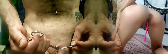 Slave's cunny getting pierced