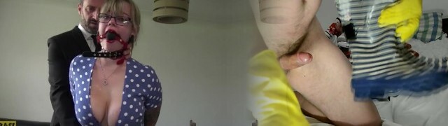 Gorgeous Doms Milk Their Slave And Make Him Eat Jism