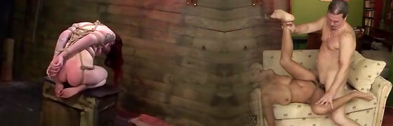 Bondage red haired whore Penny Lay gets her muff disciplined in the dark room