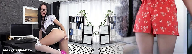 Abnormal brunette in glasses and school uniform Sasha Sparrow wanna go solo