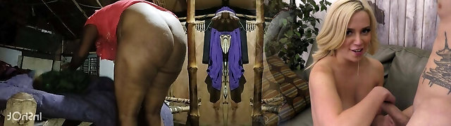 Massage Rooms Blonde masseuse squeals with joy as she takes massive cock