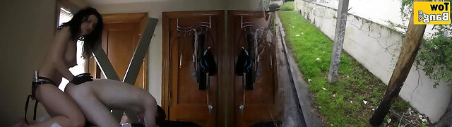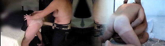 Femdom Goddess Wife Strap On Pegs Subjugated Cuckold Husband In Chastity While Taking Bbc Doggystyle